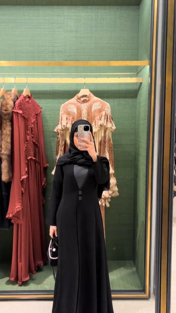 عباية أنيقة من قماش كريب فاخر، بقصّة نص كلوش تمنحك انسيابية وأناقة في كل حركة.